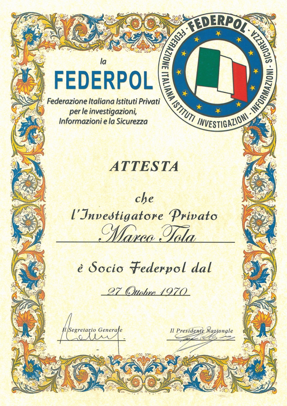 Tola Marco - Riconoscimento in qualità di Socio dell'associazione