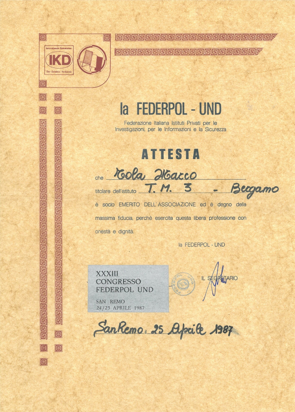 Tola Marco - Riconoscimento in qualità di Socio Emerito dell'associazione